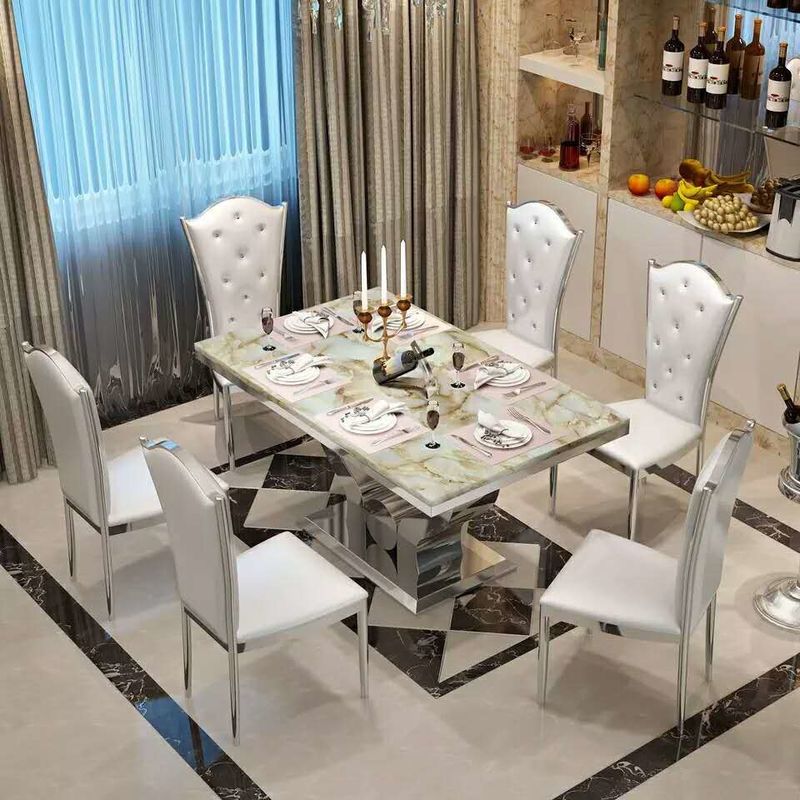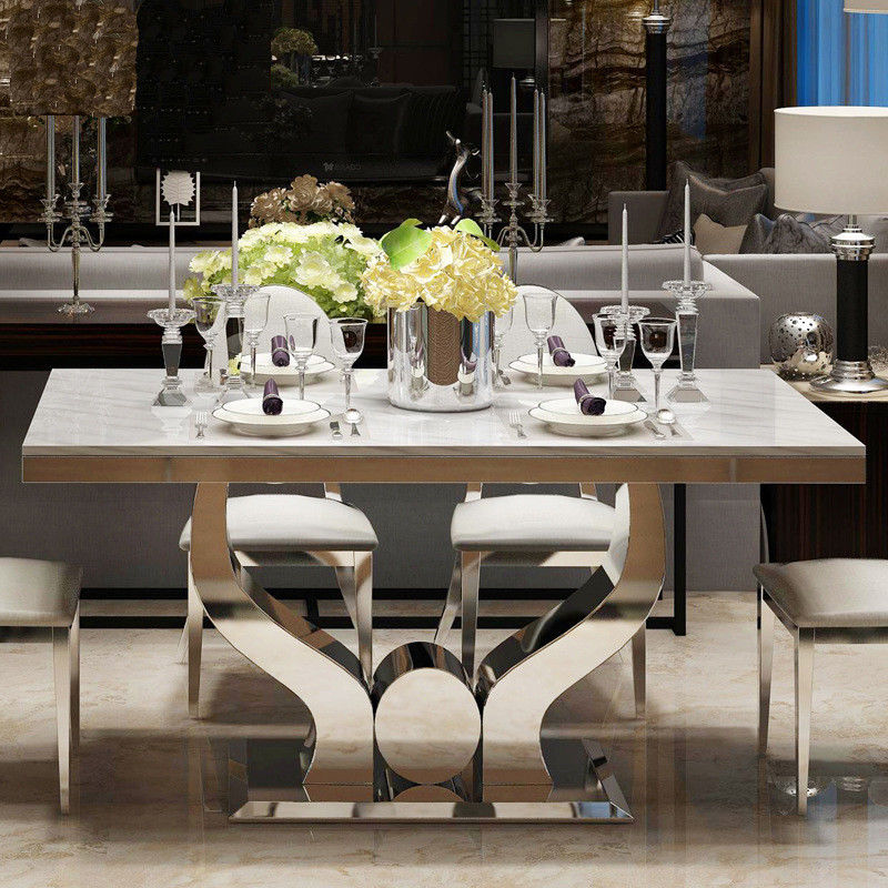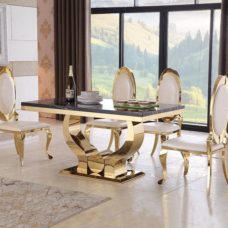 | Столик для проживания | Ширина: 0,8 м, длина: 1,6 м, сборка: требуется, материал верхней части стола: мрамор, материал столовой ножки: нержавеющая сталь, цвет: золото/серебро/на заказ, поворотник: да, форма: квадрат |
