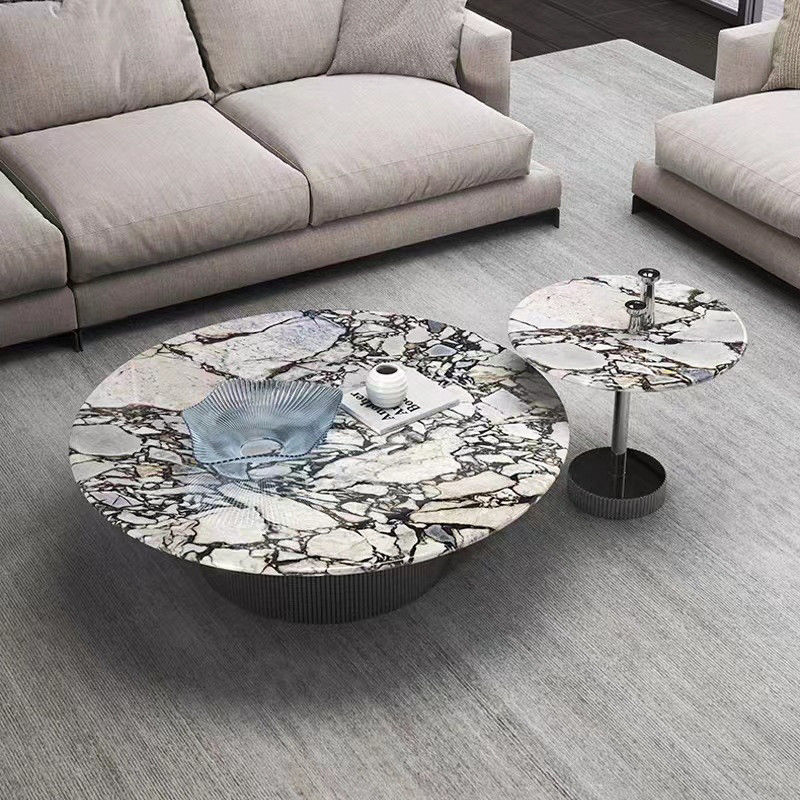 Столовой стол этого Марморно-чайного кофейного стола сделан из роскошного и долговечного мрамора, что обеспечивает прочную поверхность для размещения напитков, книг или предметов декора.Естественные узоры и цвета мрамора придают столу уникальный и утонченный оттенок.